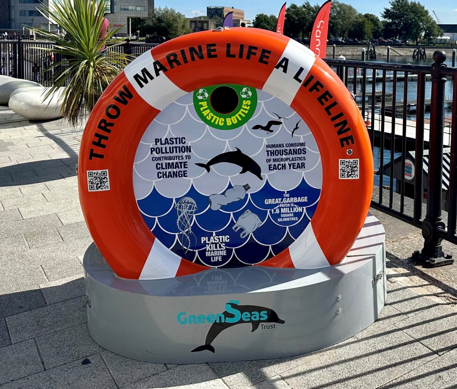 Becky Jones, Marketing Manager at Mermaid Quay, expressed her excitement saying “We are extremely proud to host the first GreenSeas Trust Bin in Wales here at Mermaid Quay. This initiative aligns perfectly with our commitment to sustainability and the environment. By encouraging visitors to properly dispose of plastic waste, we hope to inspire a culture of awareness and action against marine pollution. Together, we can make a significant difference in preserving the natural beauty of Cardiff Bay for future generations.”